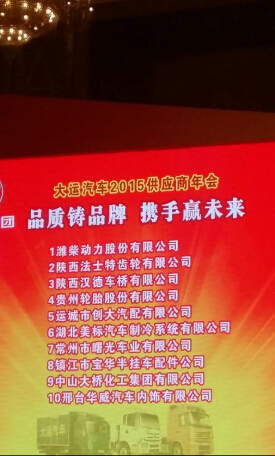 熱烈祝賀創(chuàng)大汽配榮獲大運集團(tuán)2014年度優(yōu)秀供應(yīng)商